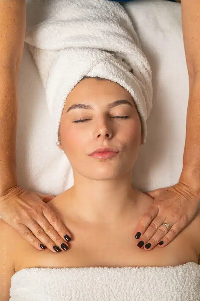 Étape 5 : Massage du visage et du décolleté, accompagné d’un moment de relaxation profonde